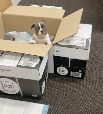 He hadnāt been potty-trained yet, and the whole office floor was carpeted. So I set up a big box with pee pads and crossed my fingers. He whined. All. Day. Long. And one day⦠he escaped. š¤¦š»āāļø