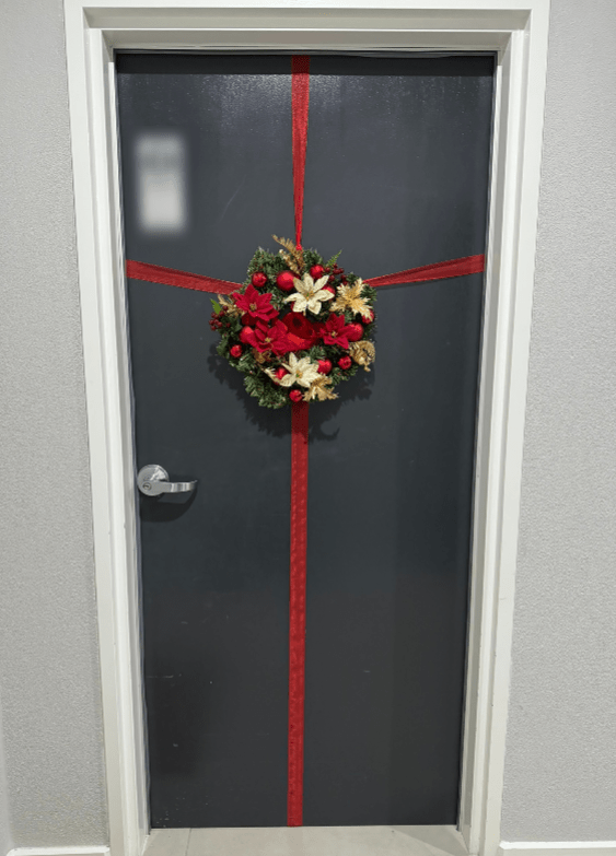We wrapped our front door like a giant Christmas gift!
