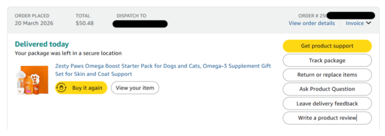 This is where the story gets exciting (for me, at least). I’m planning to come back and update this post with a full review once we’ve been using the Zesty Paws Omega Boost consistently for a month or so.